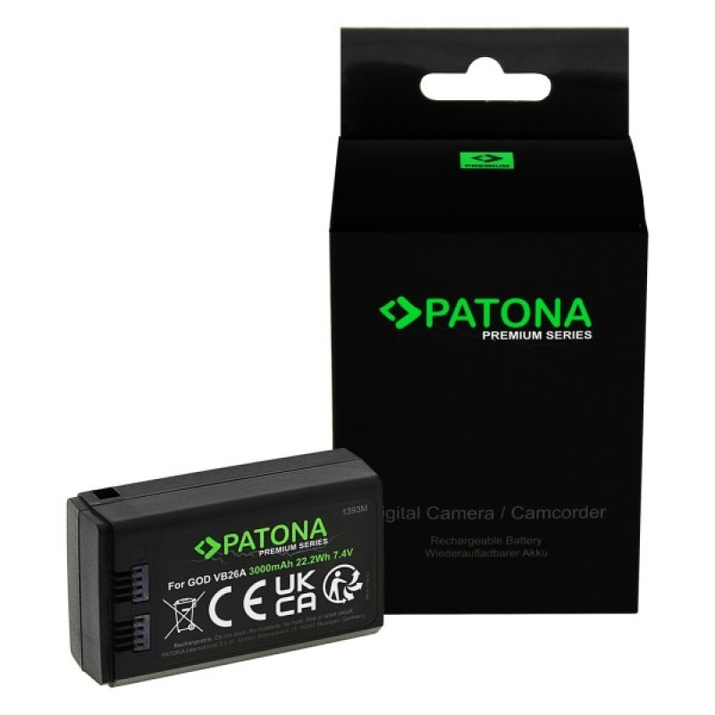 Baterie premium Li-ion de la producătorul german Patona. Această baterie oferă un port USB-C cu 5V/2A. Bateria poate fi încărcată prin aceasta.