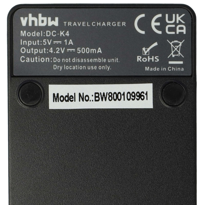 Stație de încărcare VHBW extrem de practică pentru încărcarea bateriilor pentru camere/camere video care funcționează prin conectorul MicroUSB. Stația de încărcare este conectată cu un cablu USB la fiecare sursă de alimentare pentru un telefon mobil sau o tabletă care funcționează printr-un conector MicroUSB. Contine un indicator LED de stare care ne arata starea de incarcare a bateriei. Este inclus și un cablu USB de 40 cm lungime.