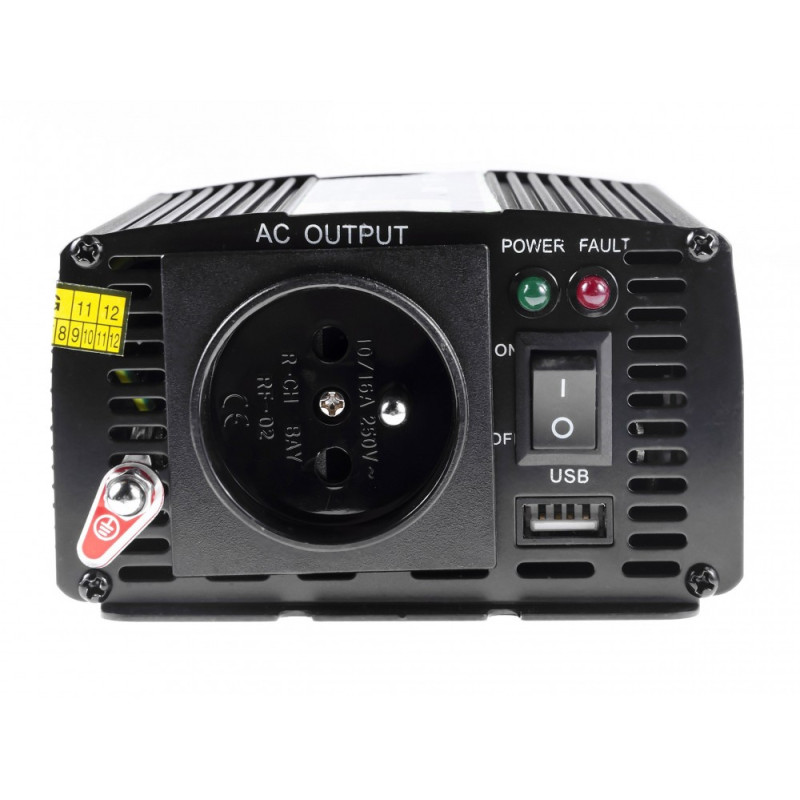Convertor auto de calitate sau invertorul Green Cell permite alimentarea dispozitivelor care sunt echipate cu o priză electrică obișnuită. Invertorul, care poate fi conectat la o priza de tigara (cablu inclus) sau direct la baterie, are protectie la temperatura si certificate CE si RoHS. Dispune de un sistem de răcire Turbo Cooling. Are un întrerupător de pornire/oprire încorporat și lumini LED care arată starea invertorului. De asemenea, destinat alimentarii laptopurilor, televizoarelor mici, luminilor, ventilatoarelor, diverse surse de alimentare etc. O ieșire USB de 5 V (curent maxim 2,1 A) este disponibilă și separat.