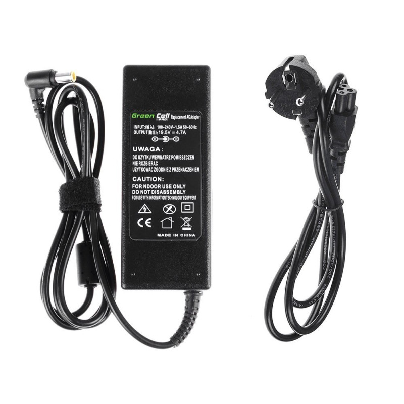 Încărcător pentru laptopuri Sony fabricat de Green Cell cu protecție la supraîncărcare, protecție la supracurent, protecție la temperatură și certificare RoHS.