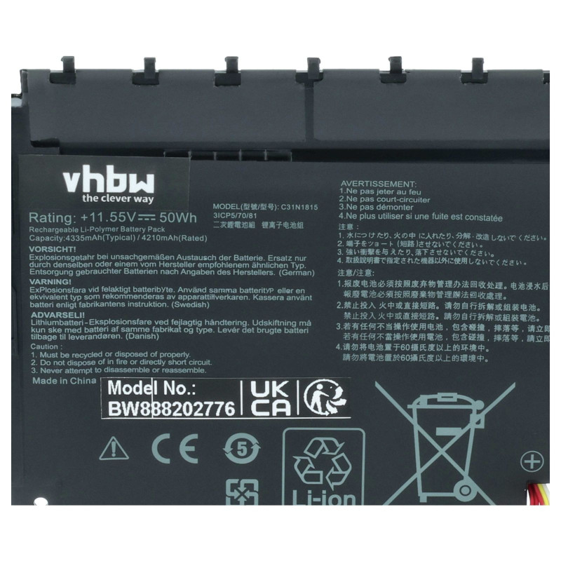 • Bateria de înlocuire este fabricată conform designului și tehnologiei producătorului german VHBW, garantând o calitate excelentă